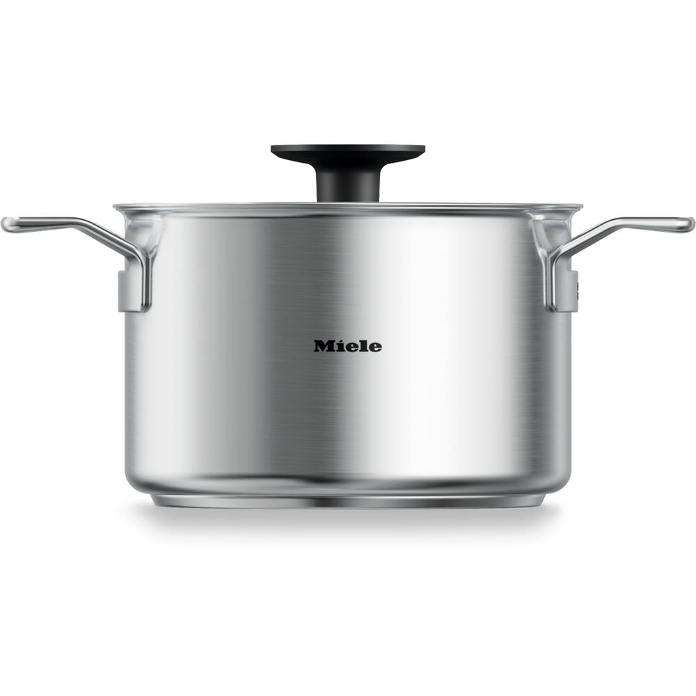 Das langlebige und hochwertige Kochgeschirr im exklusiven Miele Design überzeugt mit seiner geradlinigen Premium-Optik „Made in Switzerland“. Es ist für alle Herdarten geeignet, auch für Induktion, und ermöglicht dank Glasdeckel auch das Sichtkochen. Ohne Deckel ist es außerdem backofengeeignet. Die praktische Innenskala ermöglicht die Messung der Flüssigkeitszugabe direkt im Topf – ganz ohne separaten Messbecher.
