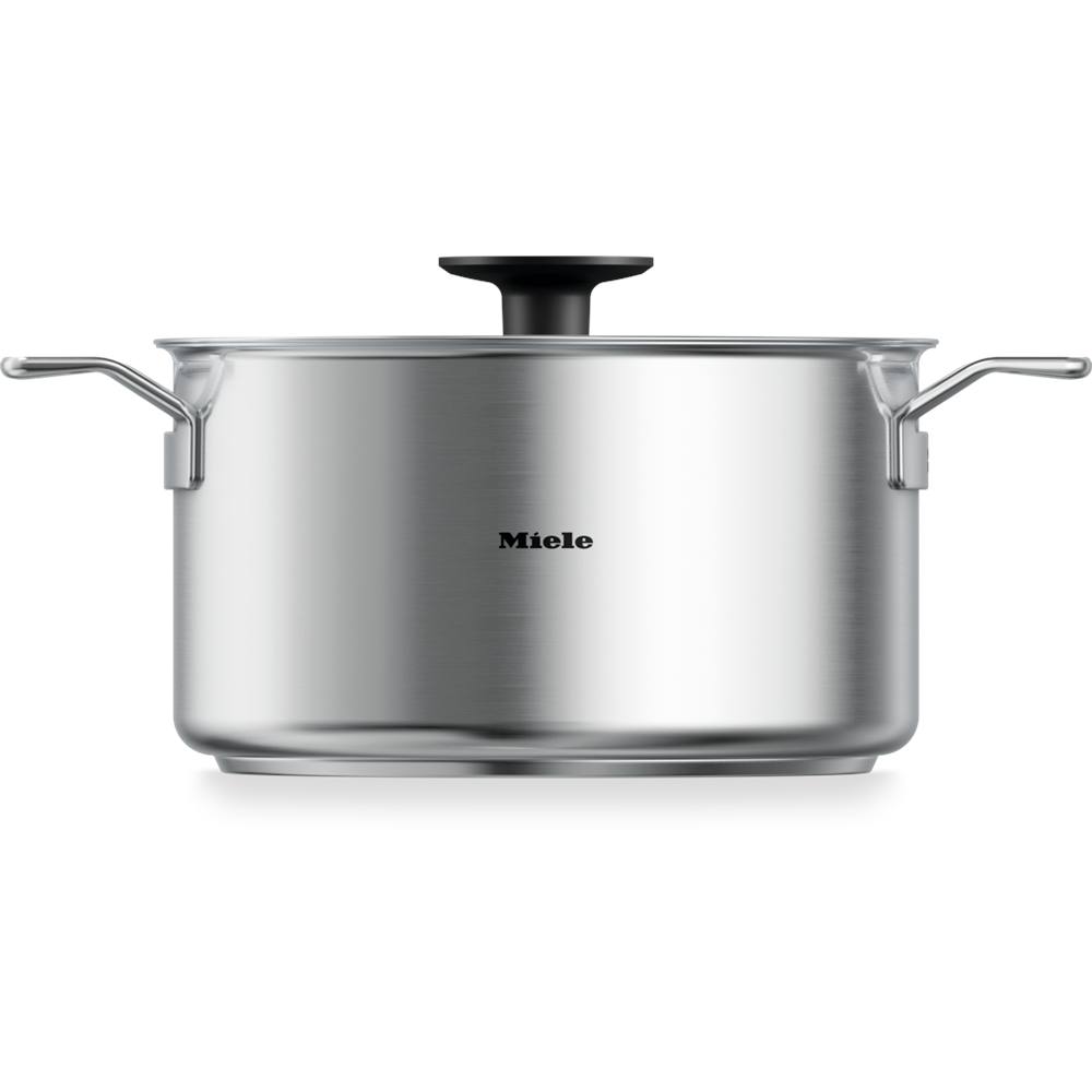 Das langlebige und hochwertige Kochgeschirr im exklusiven Miele Design überzeugt mit seiner geradlinigen Premium-Optik „Made in Switzerland“. Es ist für alle Herdarten geeignet, auch für Induktion, und ermöglicht dank Glasdeckel auch das Sichtkochen. Ohne Deckel ist es außerdem backofengeeignet. Die praktische Innenskala ermöglicht die Messung der Flüssigkeitszugabe direkt im Topf – ganz ohne separaten Messbecher.